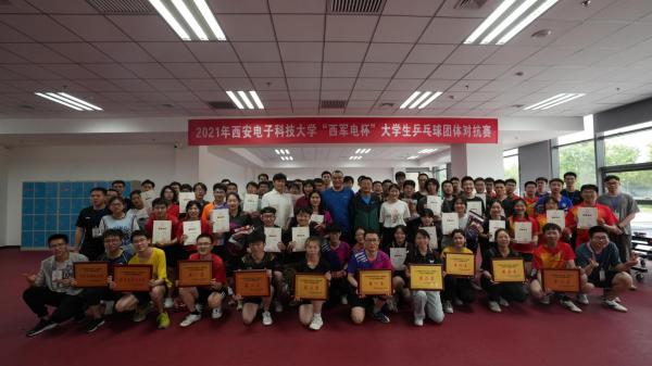 由西安电子科技大学体育工作委员会主办、体育部乒乓球俱乐部承办、校大学生乒乓球协会协办的年度“西军电杯”大学生乒乓球团体对抗赛于5月21日精彩落幕。共有16个学院18支队伍,200余名运动员(包括20余位外援教师)和学生裁判员20余人参与了比赛。