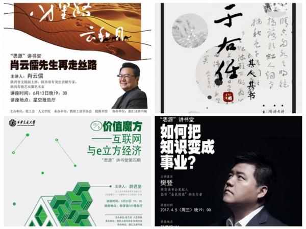 2017年1月,校工会组建了学校教职工读书协会,协会成立伊始组织策划了“思源讲书堂”读书品牌活动,先后邀请了肖云儒、尉迟坚、钟明善、韩鹏杰、吴晓波、樊登、于赓哲等20余名国内知名学者和专家教授做客思源讲书堂,为教职工开展读书讲座,引导教职工读书,助力“思想交大”建设。