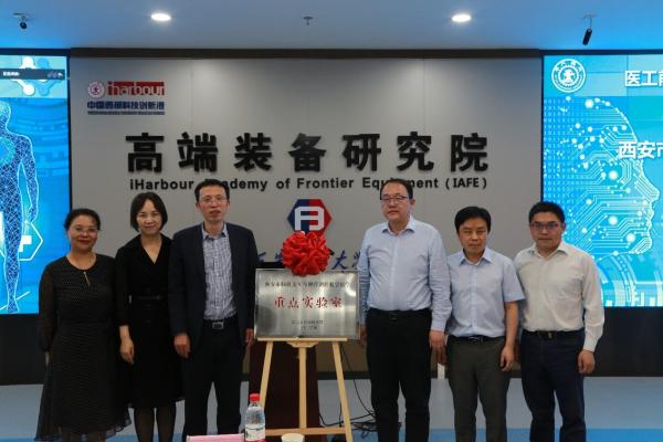 活动当天还举行了西安市脑机交互与神经调控数字医学重点实验室揭牌仪式。西安市脑机交互与神经调控数字医学重点实验室由西安交通大学、空军军医大学和西安市第一医院联合申请成立,揭牌仪式由医工交叉研究所党支部书记陶唐飞主持,高端装备研究院院长陈雪峰致辞,医工交叉研究所学术带头人、西安市脑机交互与神经调控数字医学重点实验室主任徐光华教授介绍实验室情况。空军军医大学西京医院康复科主任袁华、西安市第一医院神经内科主任吴松笛、西安市第一医院眼科医疗美容门诊部主任郅瑛同陈雪峰、徐光华、陶唐飞共同为实验室揭牌。陈雪峰院长为两家联合单位授牌。