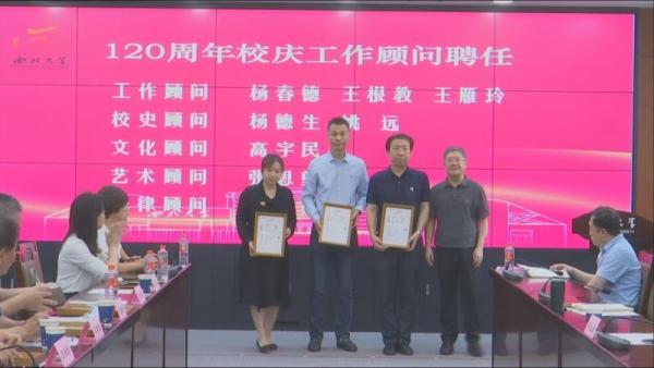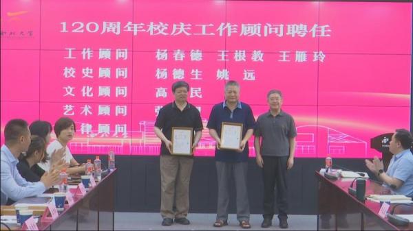 为汇集众智众力,全力做好120周年校庆工作,学校决定聘请杨春德、王根教、王雁玲为工作顾问,杨德生、姚远为校史顾问,高字民为文化顾问,张思望为艺术顾问,黄菁茹为法律顾问。郭立宏向校庆顾问颁发聘书。受聘顾问分别发言,表示要把对学校的热爱转化为推动校庆工作的力量,充分发挥经验优势、专业优势为校庆贡献智慧和力量。