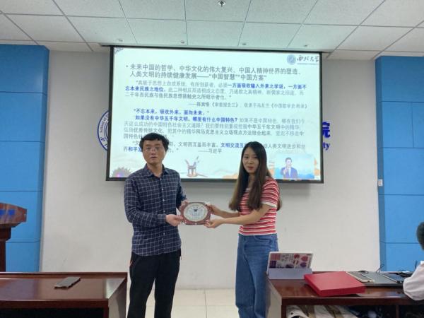 报告以线上线下相结合的方式进行,会后研究生代表向曹振明赠送了导师讲坛纪念牌。