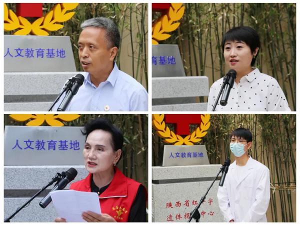 活动由陕西省红十字遗体捐献中心主任徐自力主持,李志刚、何洁、陈腾、孟晓军、徐娇共同为人文教育基地揭幕。
