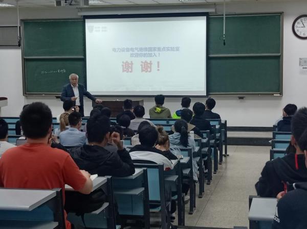电气学院教授王建华、李盛涛分别开展“电力设备电气绝缘国家重点实验室介绍”“电气技术发展前沿——先进电工材料”两场报告讲座,两位“专业大咖”在进行专业介绍的同时,不约而同地强调,科学技术研究不能仅仅停留在理论层面,更要坚持“四个面向”,并勉励同学们要在本科阶段夯实基础的厚度、拓展基础的宽度,为日后推动国家科技创新发展贡献自己的智慧。