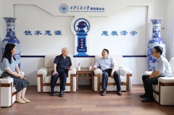 侯洵院士来到教育基金会参观指导,西安交通大学副校长席光与侯洵院士亲切座谈。