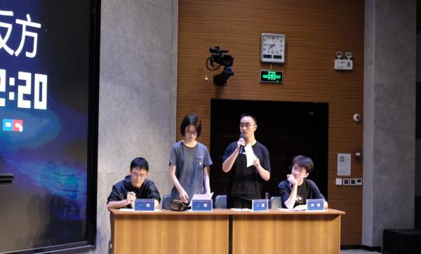 辩论赛由本学期选修“批判性与创新性思维导论”课程的8位同学组成辩论队,对论题“躺平会让人生活更轻松/不轻松”展开辩论。该辩题是对当前社会现象的反思,对学生的批判性与创新性思维培养提供了一次综合的思维与表达训练。正方辩手和支持正方的同学们身穿白色或浅色上衣,反方辩手和支持反方的同学们身穿黑色或深色上衣,分列左右两边就座。辩论结束后,观众席的同学如果被对方辩手说服,就更换座位区以表明自己的立场,以此作为胜负方的判断依据。这是本次辩论赛的一个创意,观众与老师共同担任评委,共同对辩论赛展开思考与评价。西安交通大学人文学院教授、“国运杯”辩论赛负责人、中华名辩盟副会长韩鹏杰,人文学院副院长、“批判性与创新性思维导论”课程负责人王伟担任评委。