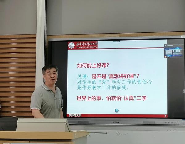 曹全喜教授结合自身四十多年的教学和科研经验,主要从课堂教学永恒不变的精神和教学艺术方法的与时俱进两部分进行介绍。曹教师提到,课堂是本科人才培养的主阵地,是教育改革的核心地带。教师是一个需要耐得住寂寞的职业,是一个“良心活”,教师只有以高度的敬业精神,打好教学基本功,认真备课,精心进行教学设计,讲课富有激情才能吸引学生。尤其是新入职教师,要打好教学基本功,养成良好的教学习惯,处理好教学和科研的关系。此外,曹老师提到,在教学中主讲教师应密切关注教育教学改革中的重点和热点,不断与时俱进。曹老师特别结合专业认证及本科教学审核评估中关于OBE理念,详细阐释了成果导向教育理念在教学中的体现及教学设计流程,以及课程思政在课堂教学中的应用实例。