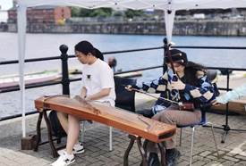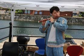 在激烈初赛后的中场休息期间,利物浦大学孔子学院文化大使用古筝、二胡和竹笛为参赛选手和前来观看龙舟赛的人表演了中国经典曲目。三种不同的中国传统乐器让大家领略了中国音乐之美。