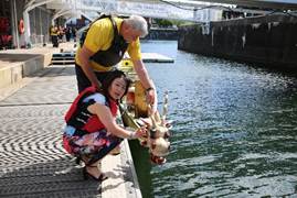 10点半开幕式现场,利物浦孔子学院常务副院长Dr.Penny Ding介绍了端午节和赛龙舟的来历,利物浦中国合作组织主席、孔子学院理事Gary Miller致辞。随后,Gary Miller先生,Penny Ding博士和利物浦孔子学院中方院长张华,手持毛笔分别为三艘参赛龙舟“点睛”,象征给予生命,同时也祝愿国家富强、人民安康。
