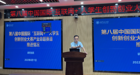创新创业学院副院长、研究生院副院长龙建纲就产业命题赛道的意义和要点进行了介绍,讲述了大赛推进过程中与企业对接及命题入围情况,对后续任务工作进行了分解安排。