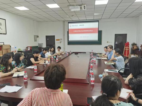 会议伊始,李长安副院长回顾了历次国际双创周外国语学院课程开设的概况,并对本年度课程进行介绍。为进一步提升学生国际化培养工作,本年度基于学生需求和本科生院部署,学院在本科生院和国合部的大力支持下进一步扩大了双创周课程规模,设置通识课程和特色课程两个模块,邀请14名外籍专家开设11门18个班次。通识课程涵盖文学文化、语言沟通技巧、写作、定性研究方法等方面,特色课程为跨文化交际口语训练营。