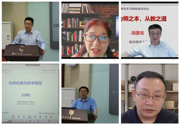 南京师范大学汤国安、西安电子科技大学姬红兵、陕西师范大学王勇慧,我校王四旺、李浩、温睿等6位教授分别作了题为“谈为师之本 从教之道”“工程类专业学位研究生教育”“研究生常见心理问题及对策”“科研伦理与学术规范”“‘复述知识’到‘创新学术’“新时代研究生导师职责与学校研究生培养规程”的报告。