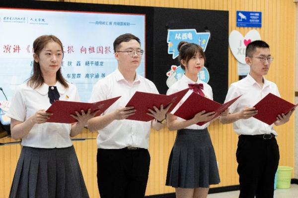 活动现场,同学们结合自己的四年经历和未来发展,围绕“做新时代西军电人的责任使命”,畅谈新时代西电青年的奋斗与拼搏、憧憬与期望、责任与担当。无论是读研深造、扎根基层、奔赴岗位,亦或执着追求、努力寻求就业机会,人文学子在学思践悟中锤炼过硬本领,以青春奋斗的姿态答好人生答卷。