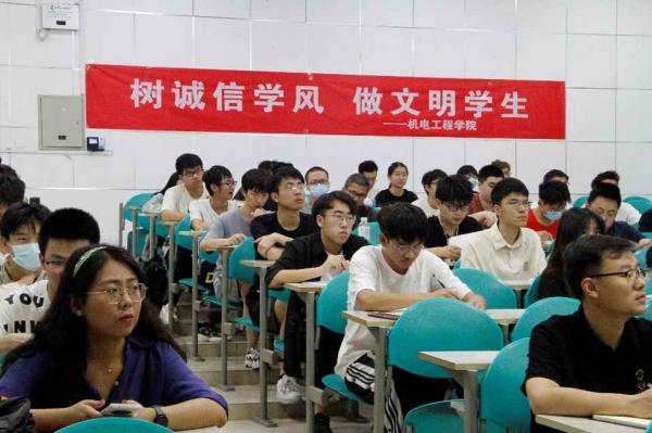 6月13日,机电工程学院在南校区B208教室举行“树诚信学风、做文明学生”主题教育活动。学院执行院长黄进为全院本科生作“坚守学术诚信 传承优良学风”主题报告。活动由学院党委副书记陈武主持,学院本科生辅导员、学生代表线下参加活动。500余名师生通过线上方式参与活动。