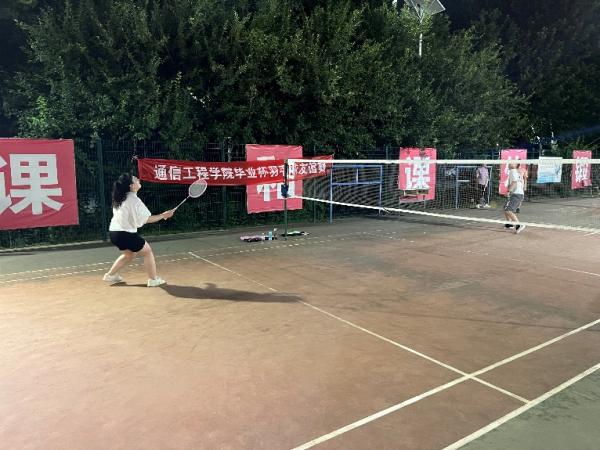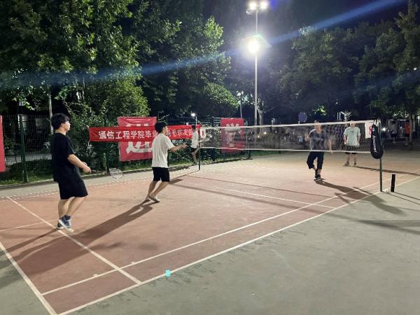 为丰富学生校园生活,提升学生身体素质,欢送2022届本科毕业生,营造轻松和谐的毕业氛围,6月17日晚,通信工程学院在南校区北操场举办“毕业杯”羽毛球友谊赛。