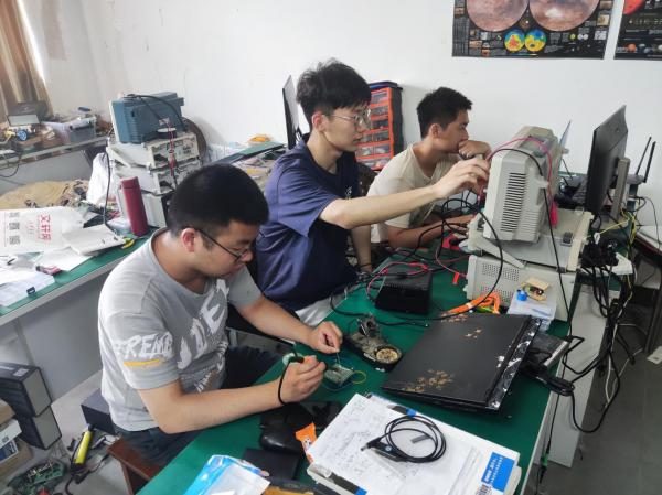 闫帅、董昭圳、康凯旋正在为电赛做准备