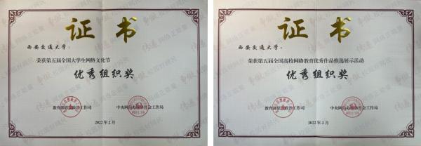 近日教育部思想政治工作司、中央网信办网络社会工作局下发通知,授予西安交通大学第五届“全国大学生网络文化节”和“全国高校网络教育优秀作品推选展示活动”优秀组织奖。
