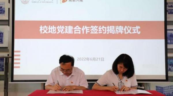 校地双方围绕党建融合共建、提高等方面进行了座谈交流。季庆阳和常彦真分别代表校地双方签署了校地党建合作协议书,任小龙和常彦真共同为校地共建红色教育基地揭牌。