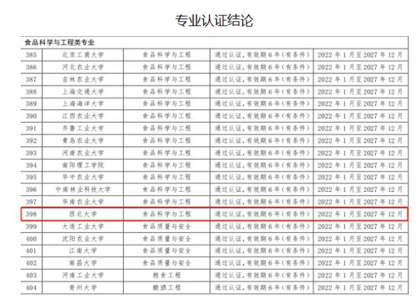 近日,中国工程教育专业认证协会公布了2021年通过工程教育认证的专业名单,我校食品科学与工程专业通过认证。目前,我校共有5个工科专业通过工程教育认证。