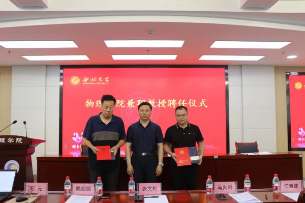 7月1日上午,我校在长安校区举行石元、张文松兼职教授聘任仪式暨校企合作协议签约仪式。校党委常委、副校长赖绍聪,陕西澳威激光科技有限公司总裁石元、西安和其光电科技股份有限公司董事长张文松出席仪式。人力资源部、研究生院、国际合作部、国内合作与校友工作处负责人和物理学院全体教职工参加了活动。聘任和签约仪式由物理学院党委负责人主持。