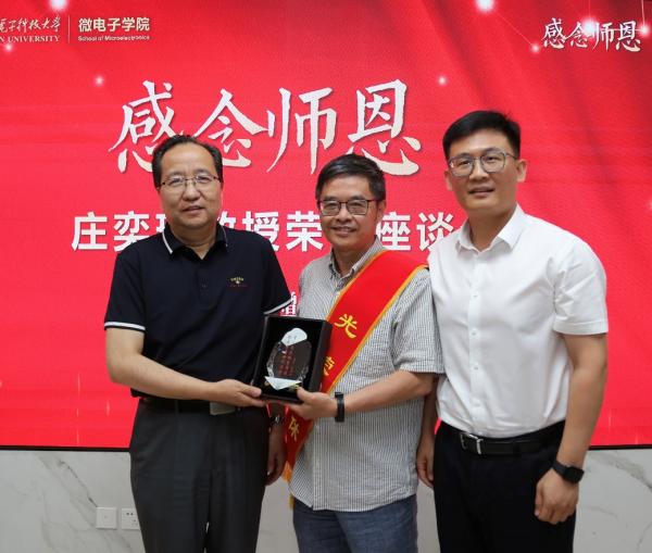 交流环节中张进成说到:“庄老师也是我当年上学时的老师,还记得他上课的严谨与认真,他教书育人有情怀、干事创业有担当、为人处世有激情,作为微电子学院发展的重要参与者、推动者和见证者,他坚守、坚韧、坚持的精神品质值得我们大家学习。”师生代表们也纷纷发言,都对庄老师的光荣退休表示诚挚祝福和美好祝愿。