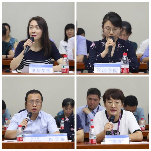 电信学部党委书记梁莉、管理学院党委副书记叶宁、医学部党委副书记陈晨、文治书院院务主任王琦结合本部门工作实际,交流分享了学生管理工作经验。