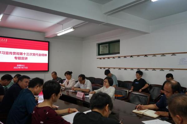 7月15日,校党委常委、统战部部长张定红到体育中心宣讲学校第十三次党代会精神,并进行调研。