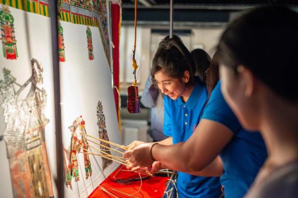 在西安交通大学秦腔博物馆与钟明善书法博物馆,同学们跟随国家一级演员和西路皮影非物质文化遗产传承人学习秦腔与皮影表演,在专业老师的指导下,现场体验书法题跋及汉瓦当拓片的制作。在榆阳剪纸传习所,跟随非物质文化遗产传承人学习陕北民间剪纸。同学们纷纷表示,秦腔、皮影、剪纸、书法让大家感受到了“中国百姓的鲜活日常”。保护好、传承好、利用好非物质文化遗产,是我们的共同责任,是人类文明赓续和世界可持续发展的必然要求。