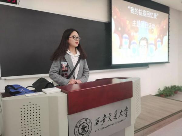 西安交通大学以理工闻名,为展现文科专业闪光点,何诗弦组织支部成员积极探讨,寻找良策。为展现学科优势,支部成员加入校级团学宣传组织,活跃在学校各处的宣传岗位上,用一篇篇推送、一张张照片、一个个视频,展现新媒体人的光彩。2021年末至2022年初,西安疫情突发,学校进入封闭状态,支部成员在做好自身防疫的同时,积极参加学校的防疫志愿活动,多名同学利用专业所学成为学校防疫宣传报道组志愿者,为学校抗疫贡献新媒体学院的力量。2022年元旦前夕,硕0192团支部参与学校举办的“‘疫’起加油,向阳而歌”线上歌唱大赛,凭借作品《明天会更好》获得“十佳人气团支部”称号。