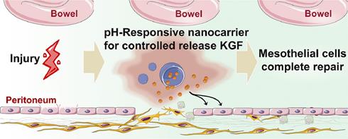 1月,生物材料领域权威期刊Acta Biomaterialia在线发表李徐奇团队的最新研究成果。一附院为第一和通讯作者单位。李徐奇团队与徐州医科大学药学专家刘瑞林教授合作,历遍若干种可能方法的尝试,制备了一种可包被角化细胞生长因子(KGF)的贻贝蛋白仿生纳米自主装颗粒,当其装载入透明质酸钠凝胶后,可显著提高术后腹腔粘连的预防效果。该复合凝胶在体内始终为半流体形式,有利于其在体内随体位变化时充分作用于腹膜表面,避免受损腹膜表面间直接接触。更关键的是,该复合凝胶具有酸响应和酶响应的“半智能化”控释KGF能力,腹膜受损后的微环境炎症反应和缺氧引发细胞生境pH值下降,刺激持续且平缓地KGF释放,从而持续地促进损伤腹膜间皮细胞层有序再生修复。这种方法在预防外科常见并发症术后腹腔粘连上展现了优良的运用前景。