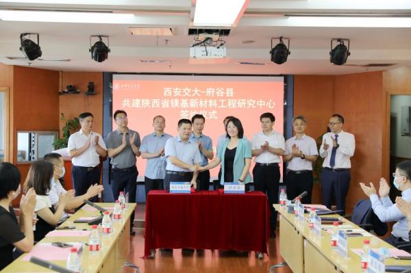 双方共同签署“西安交大—府谷县校地共建陕西镁基新材料工程研究中心合作协议”。