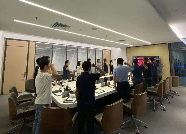 与会人员认真观看学校庆祝教师节暨表彰大会的转播,会上新入职教师由院领导逐一佩戴校徽,严肃庄重地宣读誓言。