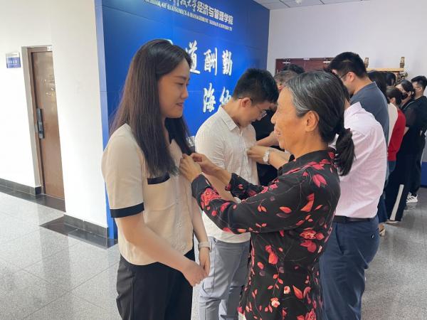 见面会最后,杜荣、孙秉珍、黄梅娟、王曦等教师代表为参会教师佩戴校徽,共同合影留念,会议在教师节与中秋节的声声祝福中圆满结束。参会教师们纷纷表示,本次见面会是新老教师的一场经验的交流,不仅加深对学院、职业的理解,还极大地鼓舞了新人积极投入教学科研服务工作的决心,经管院将携手师生,迈着踏实有力的步伐,稳步前行,共同创造桃李飘香的明天。