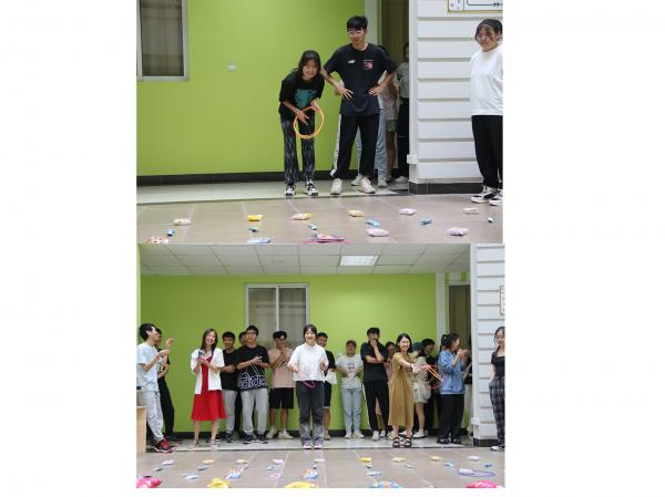 “欢聚一室,共猜灯谜”环节中,“飞花令”——关于“月”“秋”的诗词和“春色满园十五夜”,“中秋佳节结良缘”等灯谜,引得现场阵阵掌声。小组成员们默契配合,绞尽脑汁,使尽浑身解数,纷纷举手应答,抢答声此起彼伏。经过激烈角逐后,第6组同学占领上风。