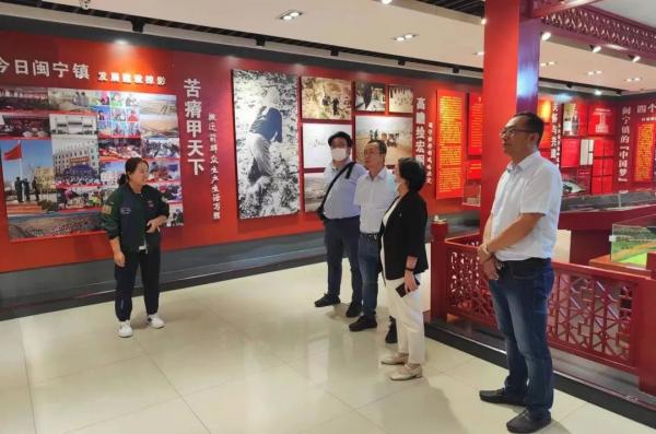 师生一行走进了闽宁禾美电商扶贫车间,该车间于2019年建成投产,优先招录当地留守妇女与建档立卡贫困户,为闽宁镇推动产业帮扶、巩固脱贫攻坚成果作出了重要贡献。在国家脱贫政策的鼓励下,无数留守妇女变身产业工人,成立“巧媳妇”直播带货团,靠自己的双手创造财富、实现自身价值。师生一行在参观过程中了解工人们的生产环境与生产流程,和工人们一起进行直播带货,帮助老乡出售农产品。随后,大家来到闽宁镇镇史馆,聆听闽宁镇三十年的脱贫奋斗故事,感受乡村振兴战略在这片黄土地上生发出的蓬勃生命力。