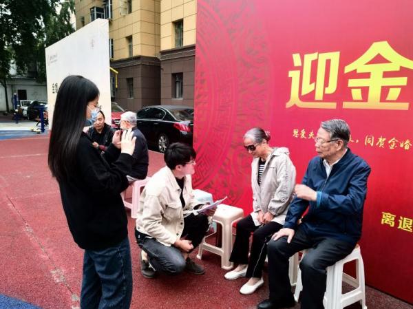 老教师们在等待拍摄过程中,志愿者们对金婚老教师们进行了采访,老教师们讲诉了他们是如何从相识到相爱,在柴米油盐、衣食住行这些琐碎的生活小事中相濡以沫,再从当年贫困艰苦的社会大环境中艰苦奋斗,携手相伴一生的故事。老教师还向志愿者们分享了他们金婚生活中最为难忘的事以及婚姻相守的秘诀。志愿者们在采访中真切感受到老一辈西电人忠于祖国忠于人民,忠于事业忠于家庭的家国情怀,对西电精神有了更深的理解与感受。