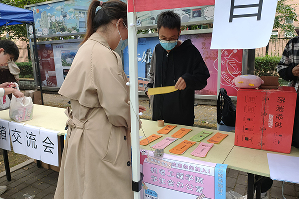 活动丰富,反响良好。本次活动旨在向广大新生宣传机电工程学院的文化氛围,帮助新生尽快融入崭新的大学生活中,更好地适应大学生活。在此宗旨下,各组织负责人别出心裁,策划了丰富多彩、积极向上的活动,如猜灯谜、纸箱交流会、抽奖等,吸引了大批新生积极主动的参与,取得了良好的反响。大一新生也表示很高兴能有这样的机会来感受大学生活的丰富多彩,这次活动对他们的帮助很大,让他们对大学生活有了更多的了解,也能更好地融入其中,并希望能有更多像这样值得参与的活动。