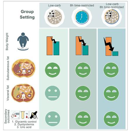 团队发现三组饮食干预方案均可显著降低体重、皮下脂肪和空腹胰岛素。而与低碳饮食相比,限时进食对腹部内脏脂肪面积和血糖、尿酸、血脂、血压等代谢指标有更大的益处,并且代谢综合征患者对限时进食的依从性更好。二者联合的减重和改善代谢综合征的效果更加显著。本研究表明可根据肥胖的脂肪堆积类型和程度选择更适宜的饮食干预方案。对于皮下脂肪型肥胖,低碳饮食和限时进食均有明显改善作用。而限时进食对于内脏脂肪型肥胖的效果优于低碳饮食,二者联合的疗效更好。本研究证明通过简便易行的生活方式干预可有效改善代谢综合征患者的体重及相关代谢指标,未来推广试行将对该类疾病的防治产生重大影响。
