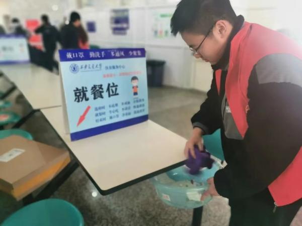 光盘打卡 志愿者清理食堂桌面