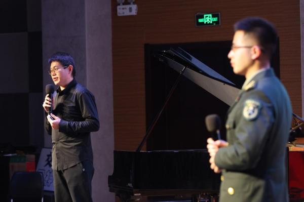 音乐会在《红旗颂》钢琴音乐背景下拉开序幕,音乐教育中心党支部书记曹耿献老师对党史、思政与中国钢琴音乐的结合进行综述。音乐会紧紧围绕着新民主主义革命时期、社会主义革命和建设时期、改革开放和社会主义现代化建设时期以及中国特色社会主义新时代四个阶段选择最具有代表意义的中国经典钢琴作品,用琴声再现党史。音乐教育中心党支部副书记李娟,教师党员文茹、刘明,军事教研室党小组教师党员张昊、王志朋分别介绍四个阶段的时代背景。