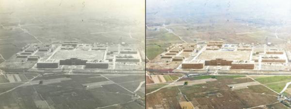 20世纪60年代西电北校区鸟瞰(左:原图,右:AI复原)