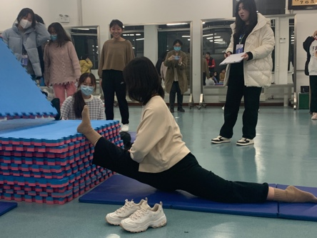紧张激烈的平板支撑比赛很快结束,接下来进行的单脚站立比赛更加令人眼前一亮。单脚站立主要考验参赛者的平衡力,戴上眼罩的特殊要求则更是增加了比赛难度。在女子柔韧项目中,女生们展现出了超强的柔韧性。随着垫子的不断增多,对身体柔韧度的要求也越来越高。柔韧不仅可以锻炼关节、肌肉的柔韧度以及伸展功能,还有助于提高身体素质。
