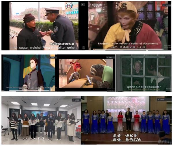 聂楚洋等同学带来法、俄、德配音,演绎了二仙桥、疯狂动物城以及原神的故事。李秋石等同学带来法语合唱《les maudits mots d’amour》,让观众们领略到了法语时而高贵典雅、时而温婉动人的风采。廖雨恬、王越两位同学带来了西、英配音《西游记》《简爱》,配音惟妙惟肖、引人入胜。安卡尔等同学带来一首明快、朴实的俄语歌曲《喀秋莎》,为本次晚会画上了一个圆满的句号。