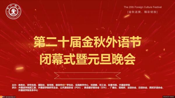 1月1日晚,西安交通大学第二十届金秋外语节闭幕式暨元旦晚会采用线上形式举办。晚会异彩纷呈,节目形式多样,从舞蹈、合唱,到配音、朗诵,各位表演者以曼妙的舞姿、灵动的歌声、流利的口语,从不同的角度为观众们展现出外语之美。