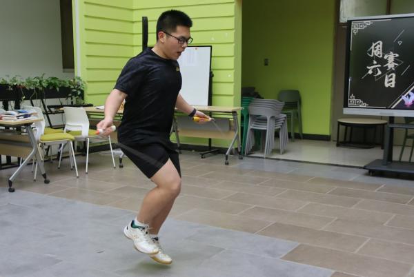 一分钟跳绳、踢毽子比赛于3月25日在海棠5号楼文化大厅进行。比赛开始前15分钟,同学们在有条不紊地进行最后的热身,调整呼吸与运动的节奏。跳绳的同学全神贯注,感受绳与地的接触,踢毽子的同学矫健地跳动,像是在冰场上舞动的花滑运动员。时间到,哨响,选手长舒一口气,在一阵紧张后感到放松。