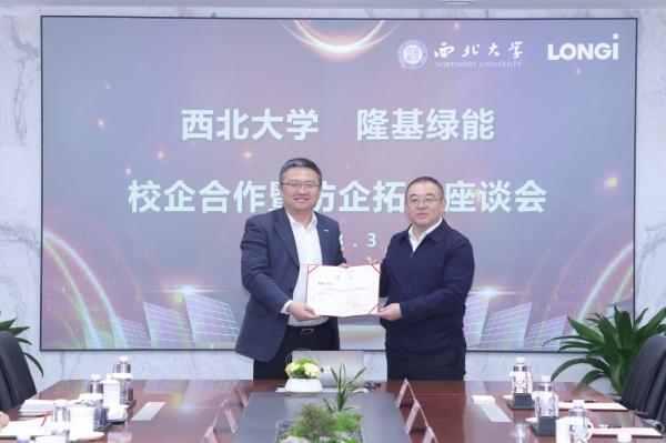 3月25日,我校党委常委、副校长常江带队赴隆基绿能科技股份有限公司(以下简称“隆基绿能”)调研并开展校企合作暨访企拓岗座谈会。隆基绿能党委书记、副总裁李文学,人力资源副总经理马福海,品牌总经理霍焱,招聘管理部、品牌管理部、中央研究院相关负责人以及我校人力资源部、研究生院、碳中和学院负责人参加座谈。双方就精准校招、隆基班建设、人才引进与互聘、科研合作、品牌提升、资源共享等话题进行了深入交流。