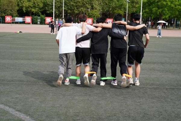 4月15日下午气温攀升至30℃,艳阳高照,但同学们对比赛的热情丝毫不减,均按时到场,并积极主动地与组员一起练习。“一二一二”的口号声、欢笑声此起彼伏,尽管很多组内的五位同学互相并不熟悉,却也展现出了非凡的默契,大家就像经久未见的老友,互相协作迈向终点。