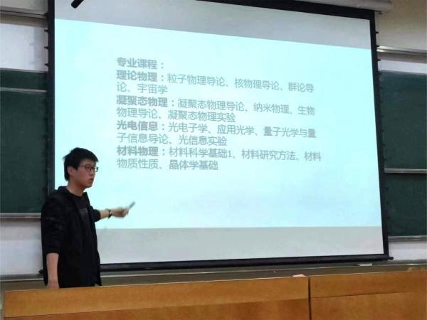 物理学院强基物理专业李博涵从物理强基专业选择、辅修、竞赛三方面进行分享,并提醒同学们要尽早选择好自己的人生目标并为之努力。光信息专业褚盛辉分享光信息专业的相关课程和难易程度以及专业基础课、专业核心课和专业选修课的区别。材料物理专业艾壬午根据自身经验详细介绍各方向的异同以及如何选择适合自己的方向。应用物理专业卓琪认为要学好物理必须要有坚实的数学理论作为基础,希望同学们打好数学基础,并分享自学资料供同学们参考。