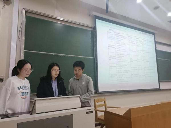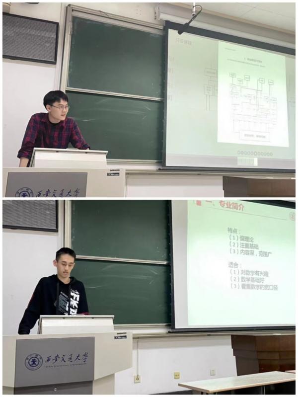 数学学院应数专业康世齐详细介绍应用数学方向的学科特点及所需学习的课程,并与统计和信计进行对比,分析异同,他向同学们分享数学学科方向选择方面的流程与经验。统计专业杨铌鼓励同学们多参加竞赛和科研,提高自己的综合能力。信计专业王梓琛从自己学习专业课的相关经验、日常时间安排两方面展开,分享在大学中劳逸结合的经验,并结合自己课堂所学内容,以互动的方式为同学们解惑。