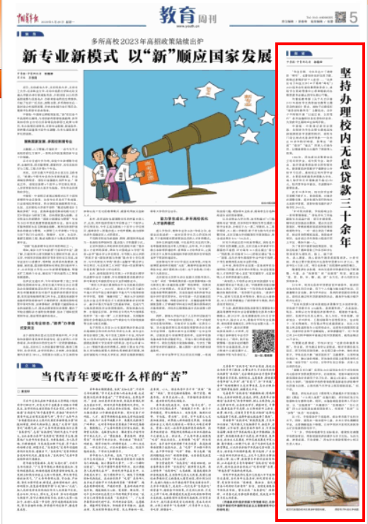 中青报·中青网记者采访获悉:在坚持为学生办理生源地及校园地国家助学贷款的同时,该校专门设立校内无息助学贷款——在长达30余年的时间里,发挥出“助困”“促学”“强志”的育人引领作用,以精准资助大大提升了资助育人效果。
