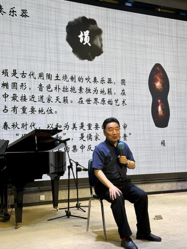 埙是我国最古老的吹奏乐器之一,历史悠久,发展缓慢。刘教授在埙的演奏技法、曲目创作和乐器改良上具有卓越的贡献,不仅将二胡、古琴等其他乐器的技法融入埙的演奏中,并且研制出宽音域十孔埙,提升了埙乐的演奏技术和表现力,获得国家专利。刘教授现场演奏埙曲,展示了高超精妙的埙乐技法,令人叹为观止。